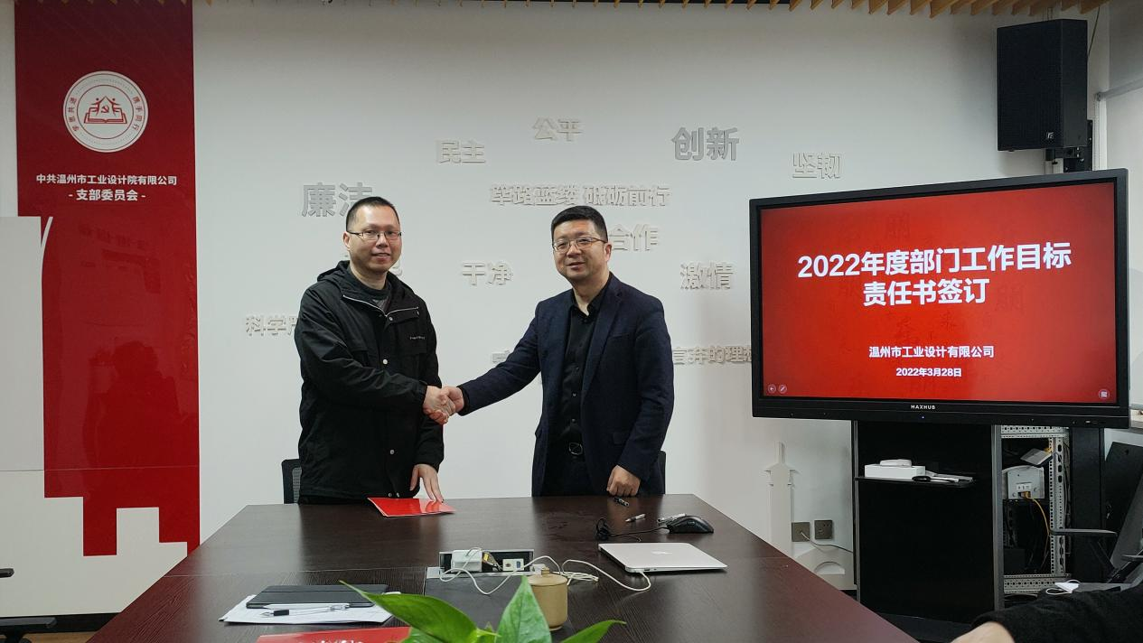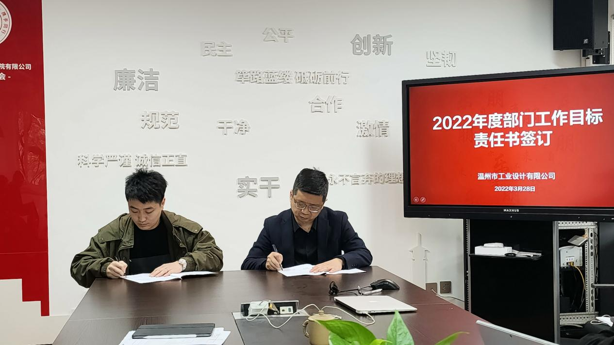 為了更好地部署2022年工作計(jì)劃,達(dá)成工作目標(biāo),3月28日,工業(yè)院召開2022年度部門工作目標(biāo)責(zé)任書簽訂儀式,公司領(lǐng)導(dǎo)班子、各部門負(fù)責(zé)人參會(huì),會(huì)議由總經(jīng)理吳家強(qiáng)主持。