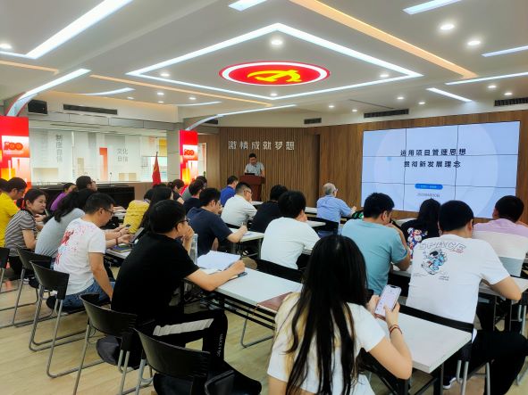 黨課內(nèi)容主要圍繞項(xiàng)目管理在科學(xué)層面和哲學(xué)層面的理解,新發(fā)展理念的內(nèi)容,以及如何運(yùn)用項(xiàng)目管理思想來貫徹新發(fā)展理念來闡述的。吳家強(qiáng)指出項(xiàng)目科學(xué)層面包括項(xiàng)目的相關(guān)概念、組織影響、項(xiàng)目生命周期、項(xiàng)目管理過程和知識(shí)領(lǐng)域,哲學(xué)層面是從項(xiàng)目管理思想延伸至如何構(gòu)建企業(yè)的管理和發(fā)展。要從戰(zhàn)略、運(yùn)營(yíng)、人力資源的管理上,以及企業(yè)文化、數(shù)字化建設(shè)上做好工作去推動(dòng)企業(yè)的發(fā)展。有效的項(xiàng)目管理思想能提升企業(yè)的管理效率,因此要運(yùn)用好項(xiàng)目管理思想,以新發(fā)展理念引領(lǐng)企業(yè)的高質(zhì)量發(fā)展。